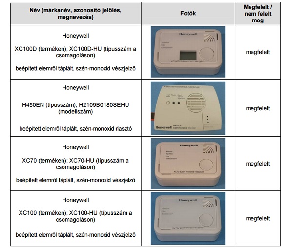 A fogyasztóvédelmi hatóság által eddig vizsgált CO-érzékelők