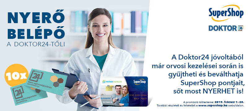 Regisztráljon a www.supershop.hu/nyerjen weboldalon és nyerje meg a 10 db Doktor24 Start ajándékkártya egyikét! A promóció időtartama: 2019. február 1-28.