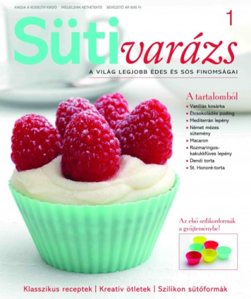 A Kossuth Kiadó új, 20 részes receptmagazinja ajándék szilikon sütőformákkal. A magazinban a leghíresebb, legkedveltebb édes és sós süteményeket találja az olvasó a világ minden tájáról.Szilikon: forradalom a sütésben Biztosan nem ragad le és nem ég oda a sütemény! A finomság egyetlen mozdulattal kifordítható a formából. Színpompás és tartós. Rugalmas anyagának köszönhetően kis helyen tárolható. Sütőben, mikrohullámú készülékben és mélyhűtőben is használható. Mosogatógépben mosható