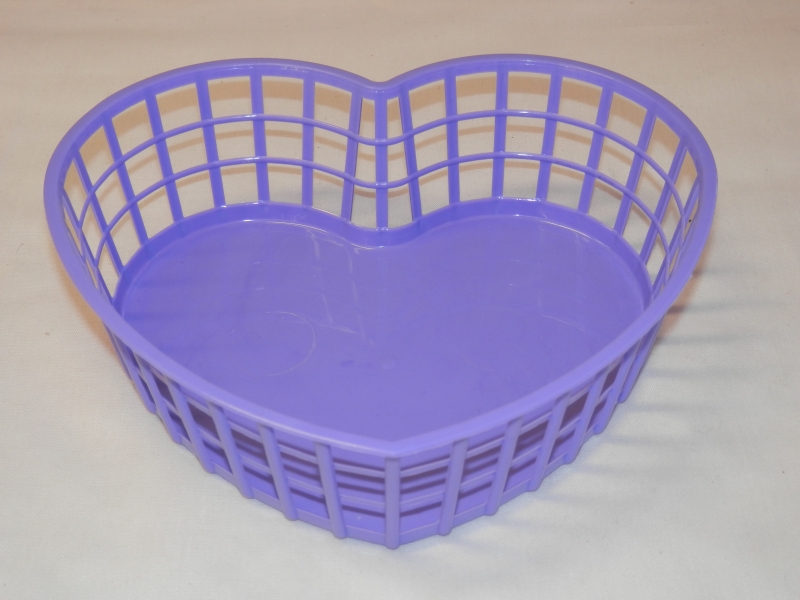 A vegyes színben kapható, szív alakú műanyagkosár hossza 160 mm, szélessége 190 mm, magassága 57 mm.