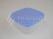 A kék színű fedelű, csatolófüles, szögletes műanyag ételdoboz űrtartalma 2 liter, hossza 260 mm, szélessége 185 mm, magassága 75 mm. Újrahasznosítható műanyagból készült. A fedélen körbefutó...