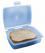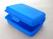 A kék színű műanyag uzsonnás doboz pattintós zárószerkezettel készült. Szélessége 175 mm, hossza 125 mm, magassága 70 mm. Egyszerűen és könnyen tisztítható, mosogatógépben is mosható. A műanyag uzsonnás doboz használata biztosítja a tízórai, uzsonna egyszerű és kényelmes szállítását. Az uzsonnás dobozban tartott étel nem nyomódik össze, nem hagy foltot a tankönyveken, iratokon. Ezenkívül a háztartásban kisebb tárgyak tárolására is kiválóan használható.