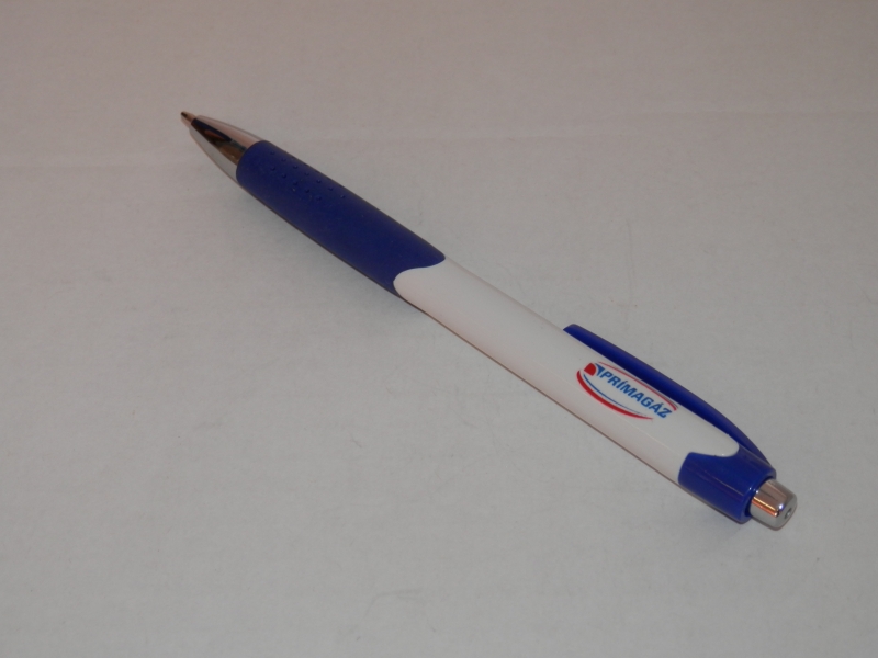 Prímagáz műanyag reklámtoll. A Prímagáz golyóstolla kék színű, markolata felett található Prímagáz logóval ellátva. A toll a közvetlen markolatnál puha műanyag borítással készült, így teljességgel kézre áll és használata is komfortos. A Prímagáztól minden téren már jól megszokott, kivételes minőséggel készült, a benne található bél kék színű, de természetesen cserélhető is. A tollon található csíptető csak még praktikusabbá teszi a terméket. Más színben is kapható.