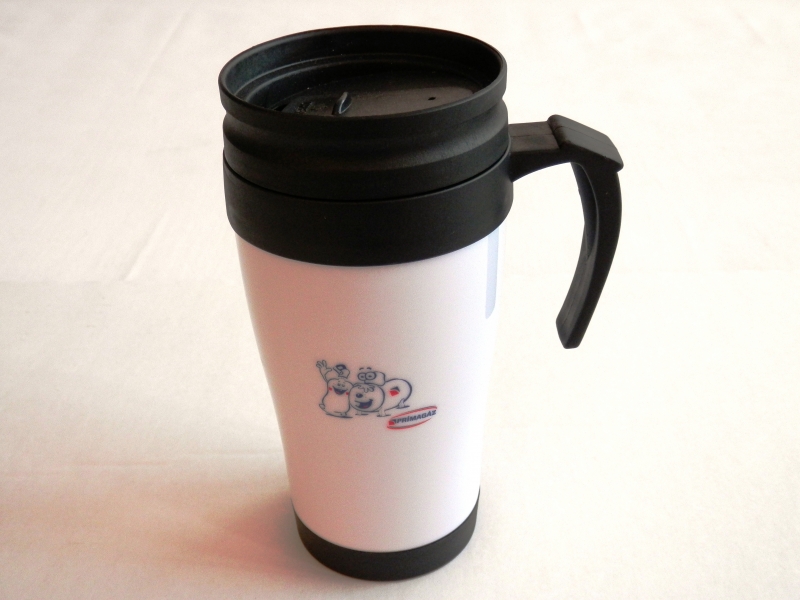 Prímagáz termosz-autós bögre. A termosz a Prímagáztól megszokott kiváló minőségben készült, oldalán Prímagáz logóval van ellátva. Kivételes minőségének köszönhetően hőtartó képessége rendkívül magas.