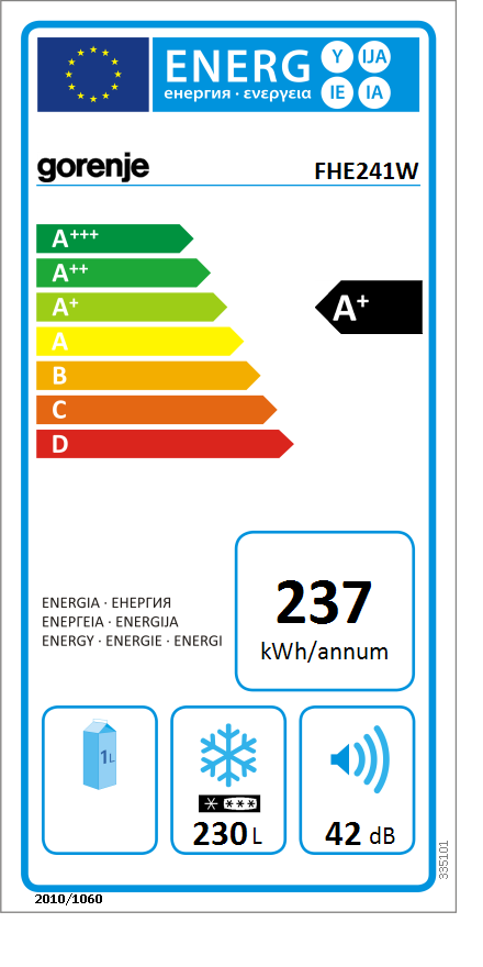 Gorenje FHE241W fagyasztóláda. A fagyasztóláda elektronikus, SensoTech vezérlésű. Nettó kapacitása 230 liter, bruttó kapacitása 240 liter. A termék FastFreeze funkciójának köszönhetően automatikusan kikapcsoló gyorsfagyasztásra is képes. A fagyasztószekrény hőmérséklete állítható. Túl magas hőmérséklet esetén a termék azonnal jelez Önnek. A fagyasztóban 2 fiók található. A Gorenje FHE241W A+ energiaosztályú. Kiválóan működik +16°C-tól + 43°C-ig. Belső tisztítása szódabikarbónás vízzel ajánlott, külső tisztítása pedig karcmentes szerekkel. A fagyasztóláda háztartási felhasználásra készült, friss élelmiszerek fagyasztására, illetve fagyasztott élelmiszerek tartós tárolására alkalmas (max. 1 évig, az élelmiszer fajtájától függően).