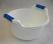 Fehér színű, műanyag 10 literes fogantyús lavór. Az átmérője 400 mm, magassága 240 mm.