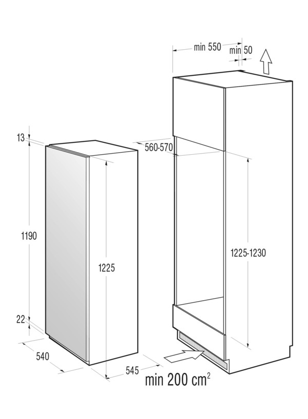 Beépítési méretek / Sz x M x M / min.-max.: 56-57 × 122,5-123 × 55 cm
