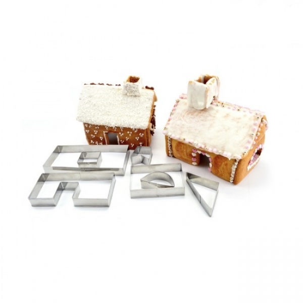 A Mézeskalács ház kiszúró készlet 7 db rozsdamentes acél formát tartalmaz, amely segítségével könnyedén készíthet egyedi mézeskalács házakat az ünnepekre.