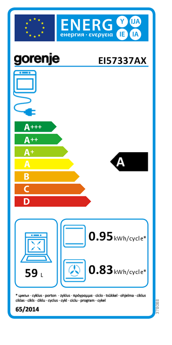 A sütő űrtartalma 59 liter. A tűzhely, az A energiaosztályba tartozik. Kezelőpanelja rozsdamentes acélból készült, míg a sütő