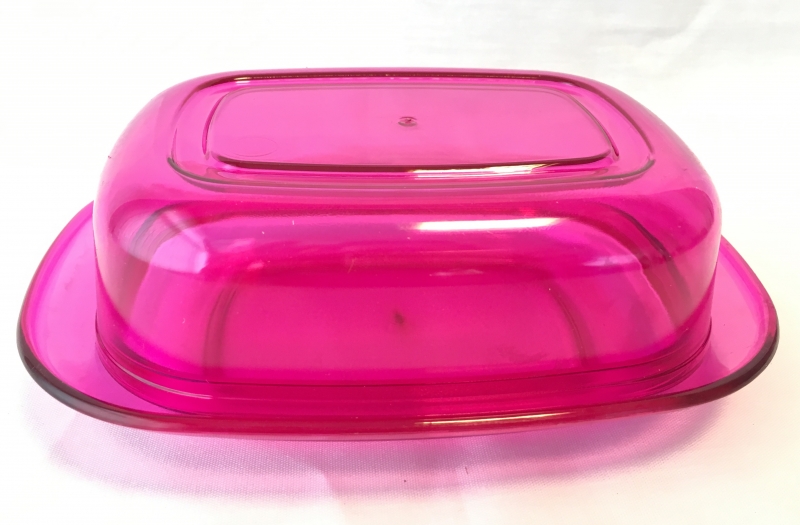 A pink vajtartó fedővel ellátott. Hosszúsága 130 mm, szélessége 180 mm, magassága 60 mm.