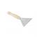 Nokedliszaggató lapát. Fémből készült, fa nyelű lapát. A termék hossza 16 cm, szélessége 9 cm és magassága 2 cm.