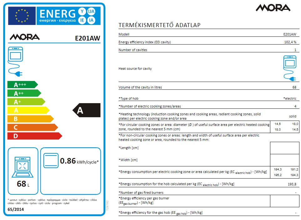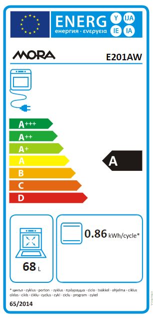 A Mora elektromos tűzhely E201AW az A energiaosztályba tartozik és a sütő funkciói közé tartozik az alsó és felső sütés, alsó fűtőelem, felső fűtőelem, infragrill és kisméretű infragrill.