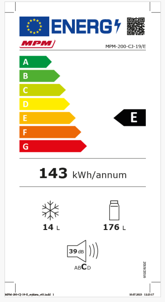MPM egyajtós kombinált hűtőszekrény, inox 200 L (MPM-200-CJ-19)