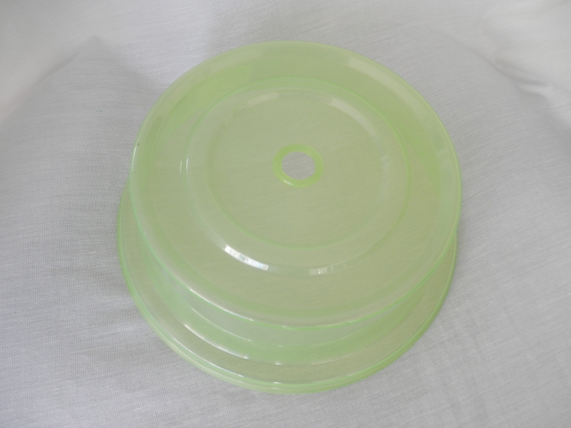 A zöld színű műanyag tányérfedő átmérője 240 mm, magassága 70 mm. Kiválóan használható a mikrohullámú sütőben az ételek melegítésénél, véd a szétfröccsenéstől. Ezenkívül a tetejére is helyezhető tányér, így dupla adag étel melegíthető. A tányérfedő -40°C és +120°C között használható. Egyszerűen és könnyen tisztítható, mosogatógépben is mosható.