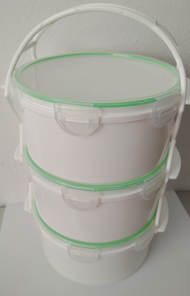 A hermetikusan záródó 3 részes, műanyag ételhordó űrtartalma 1,5 liter. Használható -20°C és +100°C közötti hőmérsékleten. A műanyag ételhordó légmentesen záródik, így széles körben alkalmazható különféle ételfajták szállítására a hordozófül segítségével valamint tárolásra a hűtőszekrényben, fagyasztóban ezenkívül mikrohullámú sütőben történő melegítésre is. Egyszerűen és könnyen tisztítható, mosogatógépben is mosható. A műanyag ételhordó fehér, friss színe vidámmá varázsolhatja a konyhánkat.