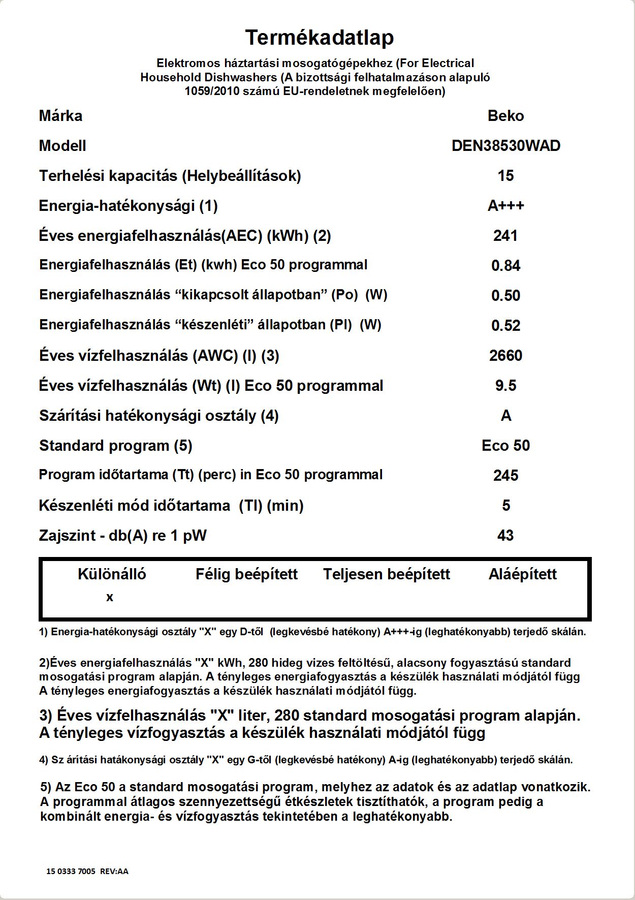 Beko szabadonálló mosogatógép (DEN-38530 WAD).
