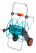 Az erős fém tömlőskocsi különösen alkalmas a hosszú tömlőkhöz. Rendkívül stabil, porbevonatos fémdobjára 100 méter 13 mm-es (1/2"), 80 méter 15 mm-es (5/8"), 50 méter 19 mm-es (3/4") vagy 25 méter 25 mm-es (1") tömlő csévélhető fel. A fémdob feletti tömlővezető és a szabadon futó tekerőkar megkönnyíti a tömlő rétegszerű felcsévélését. A széles kengyel nagy stabilitás biztosít álló helyzetben, a maximális stabilitás érdekében azonban a kocsi le is fektethető. Így nagyobb rántást is elvisel borulás nélkül. Jó tapadást biztosító, speciális bordázatú, stabil kerekeinek köszönhetően a tömlőskocsi könnyen mozgatható a gyepen. A kerekek speciális bordázata a jó tapadás ellenére kíméli a gyepet. A beépített utáncsepegés-gátló megakadályozza a víz kifolyását a tömlőből használat után vagy szállításkor. A szögben álló tömlőcsatlakozónak köszönhetően a tömlő nem törik meg, így mindig garantált a teljes vízátfolyás. A forgó csatlakozótengely meggátolja a tömlő megcsavarodását fel- és lecsévéléskor.