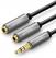• A 3,5 mm-es audio elosztó kábel lehetővé teszi MP3 lejátszók, okostelefonok, táblagépek, számítógépek vagy más audio eszközök csatlakoztatását egy 3,5 mm-es kiegészítő porttal (AUX) a fejhallgatóhoz, hordozható hangszóróhoz, erősítőhöz, AV vevőhöz, vagy autórádióhoz.
