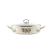 Mérete: 30 cm külső átmérőjű, 28 cm belső átmérőjű, 8 cm magas fedő nélkül, 13,5 cm magas fedővel együtt