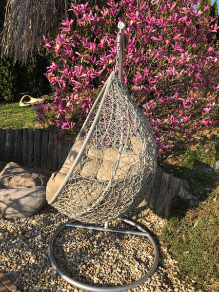 • Kényelmes, műrattan függőfotel, puha, extra vastagságú és méretű párnákkal, porszórt fém váz szerkezet.