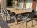 • Az exkluzív alumínium kültéri étkező garnitúra egy natúr TEAK fa lappal gyártott  alumínium asztalból “X” alakú lábbal és 8 kényelmes, rakásólható alumínium székből áll.