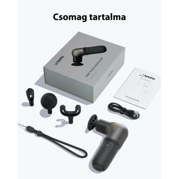 • A Naipo MINI masszázspisztoly szinte bármely izomcsoport stimulálására alkalmas.  Fegyver lehet a fájdalomcsillapításra, izmok lazításra, relaxcióra, ízületi problémákra.