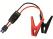 3. Csatlakoztassa a csipeszeket a jármű akkumulátorára! A piros színű csipeszt az akkumulátor pozitív (+) kimenetére, a fekete színű csipeszt az akkumulátor negatív (-) kimenetére.