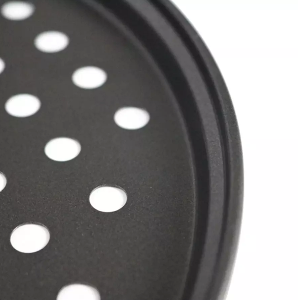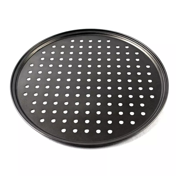 A tepsi alja azért lyukacsos, hogy a pizza tészta alulról is ugyanazt a hőmérsékletet kapja, mint ami felülről is éri.