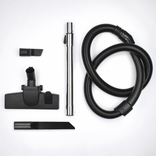 • Tartozékok: rugalmas tömlő, teleszkópos cső, padlókefe, fúvóka, többfunkciós fúvóka kefével, parkettakefe