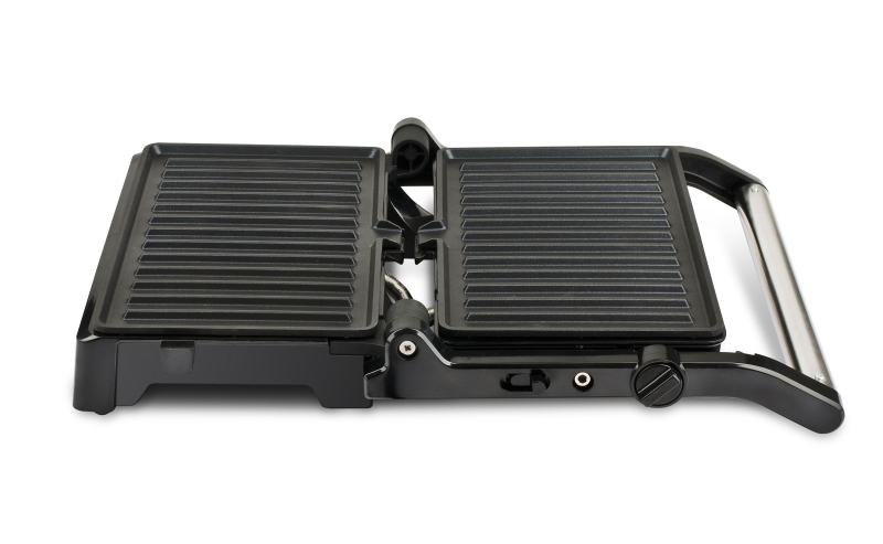 A kompakt méretű készülék működési és hőmérséklet-jelző lámpákkal rendelkezik, valamint 2 tapadásmentes, 25x15,5 cm-es sütőfelülettel rendelkezik, amelyek garantálják a természetes, egészséges és zsírmentes sütést.