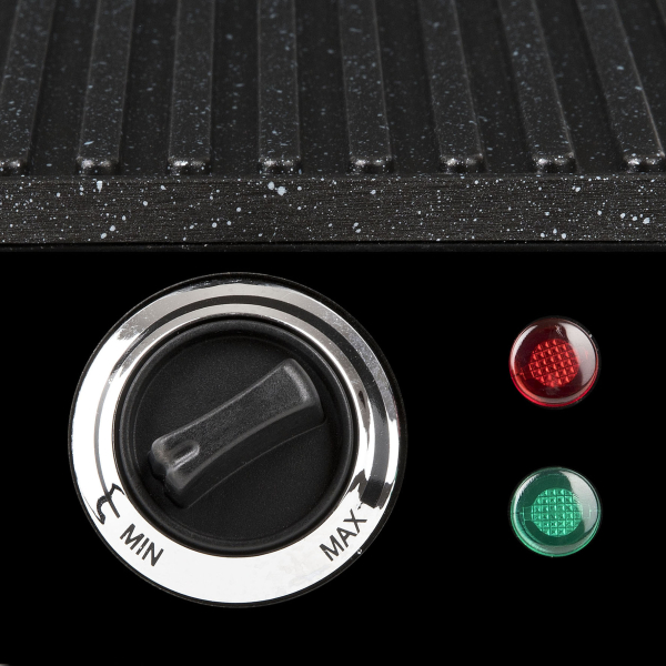 • A Girmi BS44 Petravera egyedülálló tapadásmentes "Petravera" bevonattal van felszerelve, amely lehetővé teszi a zsírmentes grillezést és garantálja a könnyű tisztítást. A grill 180 fokban nyitható, és a tálcák mérete 29 x 23 cm, így elegendő hely áll rendelkezésre a nagyobb adagok elkészítéséhez. A hőmérséklet szabályozás lehetősége és a két működési lámpa (bekapcsolt és "melegítésre kész") kényelmesen nyújtják a grillezés minden részletét.