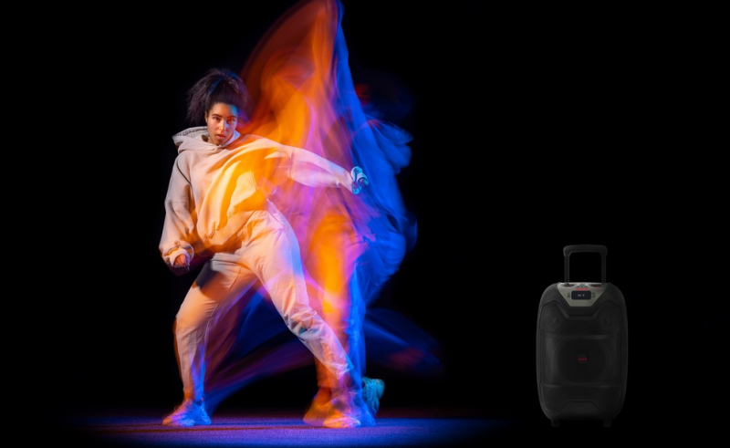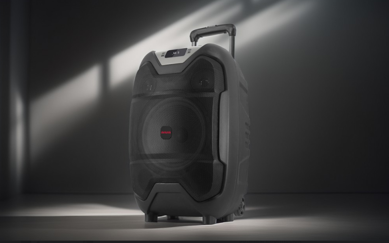 Könnyű Hordozhatóság és Hosszú Üzemidő: A beépített újratölthető akkumulátor akár 3-5 órás lejátszást biztosít, így többé nem kell aggódnod az áramellátás miatt. A teleszkópos fogantyú és kerekek lehetővé teszik az egyszerű szállítást bárhová.