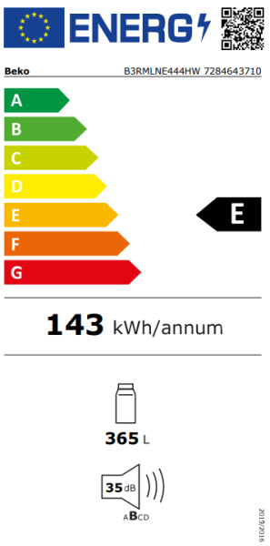 • Energiaosztály: E, éves energiafogyasztás 142.9 kWh