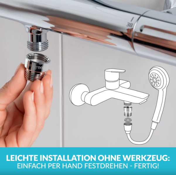 • A zuhany víztakarékossága szinte minden zuhanyszerelvényhez és fejzuhanyhoz illeszkedik, és gyakorlatilag nem igényel karbantartást. Ezenkívül a telepítéshez nincs szükség szerszámokra vagy előzetes tudásra.