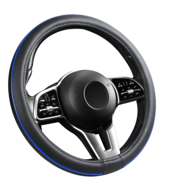 Műbőr kormányvédő 38 cm, kék betétes (795)