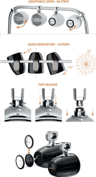 • A Hertz HTX 8 M-CL-TC hangszóró új szintre emeli a zenei élményt a vízen. Tapasztald meg az erőteljes hangzást és a vibráló vizuális effekteket, amelyek minden utat még emlékezetesebbé tesznek.