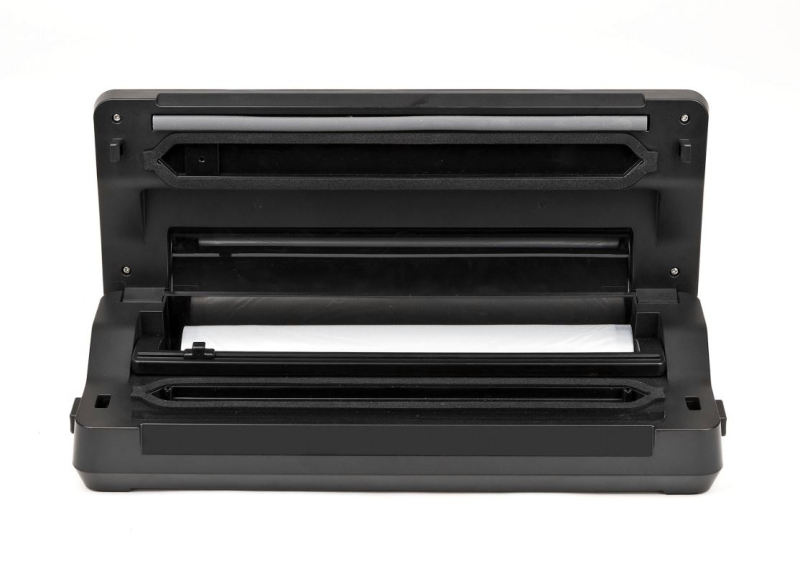 • Sokoldalú Használat: Ideális száraz és nedves élelmiszerekhez, zacskók, tekercsek és vákuumtartályok kezelésére. Az integrált hengerrekesz és vágó még könnyebbé teszi a használatot.