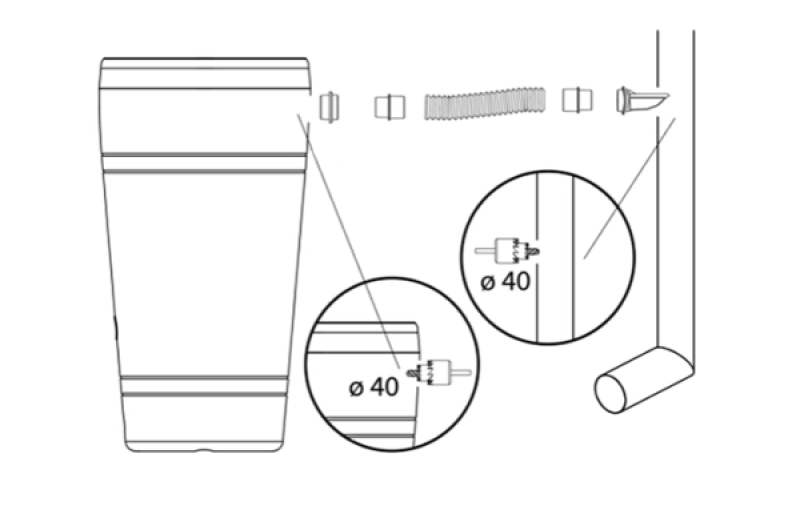 • A csatlakozókészlet célja, hogy az esővizet az ereszcsatornákból közvetlenül az esővíztartályba táplálja.