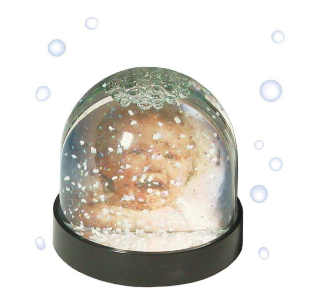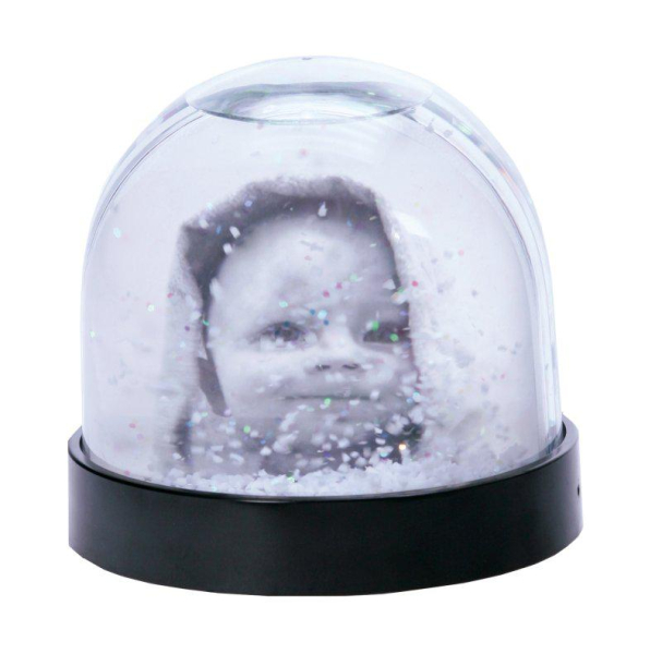A rázogatós hógömb belsejében lapos üreg található, ahová mindkét oldalra saját fotót lehet beletenni. A két fénykép között található szivacs biztosítja, hogy a fényképek hozzásimuljanak a plexi falhoz. A hógömbben található sablon segítségével a saját fénykép az üreghez pontosan illeszkedő alakúra vágható, így pillanatok alatt elkészíthető az egyedi, személyre szóló ajándék vagy dekoráció.