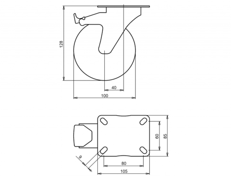 Kerék önbeálló PA gumi fékezhető 100mm (11660)