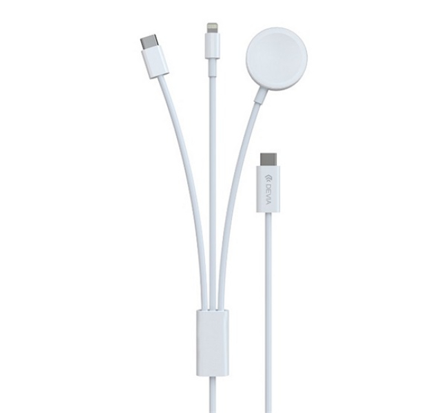 DEVIA töltőkábel 3in1 (Type-C - lightning/Type-C, Apple Watch töltő, 7.5W, wireless, 120cm) FEHÉRS (T109544)