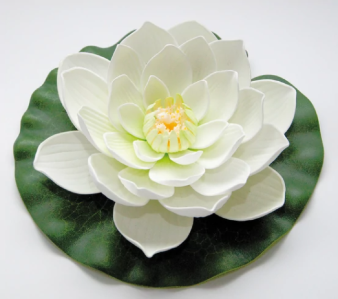 A Velda fehér lótusz élethű megjelenésével hangulatos dísze lehet bármely kerti tónak vagy vízfelületnek is. A 20 cm átmérőjű lebegő műnövény időjárásálló anyagból készült, így tartósan megőrzi színét és formáját.
