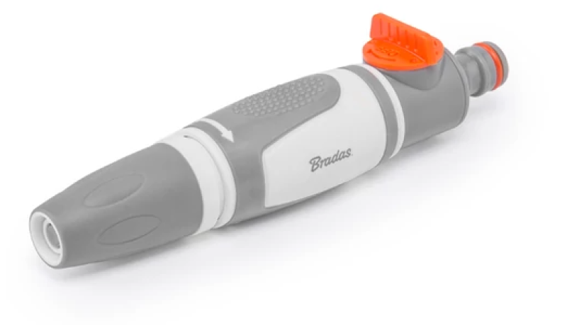 Kerti locsoláshoz használható műanyag öntözőfej, állítható szórási sugárral és integrált elzárócsappal. Kényelmes, gumírozott (TPR) markolat, könnyen illeszthető szabványos gyorscsatlakozókhoz. Ideális virágágyások, gyep vagy veteményes öntözéséhez.