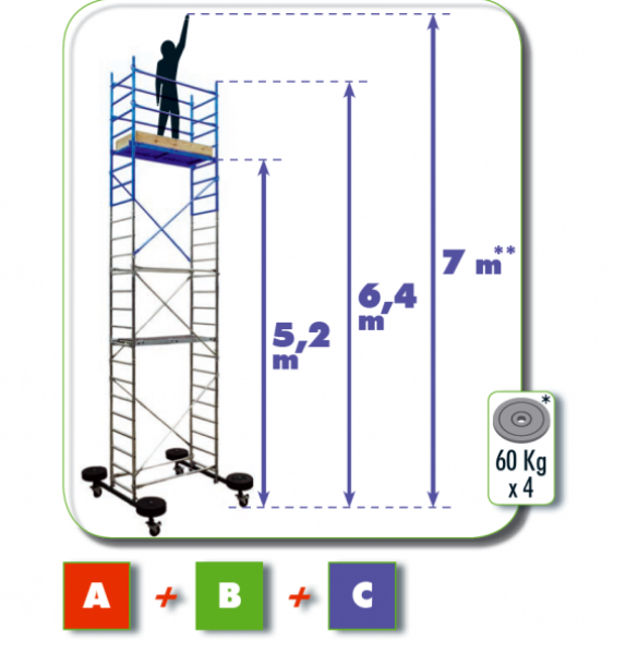 A HELIO „C” állványrész a HELIO „A” és „B” modulokhoz csatlakoztatva teljes, akár 7 méteres munkamagasságot biztosít. Ideális választás professzionális felhasználásra magasban végzett szerelési, karbantartási vagy építőipari munkákhoz.
