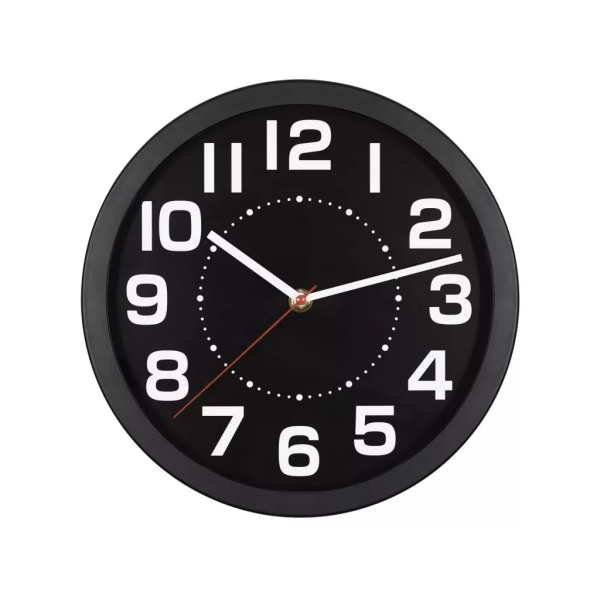 A 250 mm átmérőjű óra számlapja nagy, kontrasztos számokkal készült, amelyek még távolról vagy oldalról is könnyen és gyorsan leolvashatók.