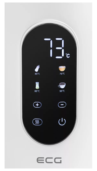 Előre beállított funkciók baba tápszer (40 °C), fehér tea (70 °C), zöld tea (80 °C) és kávé (90 °C) egy érintéssel történő elkészítéséhez