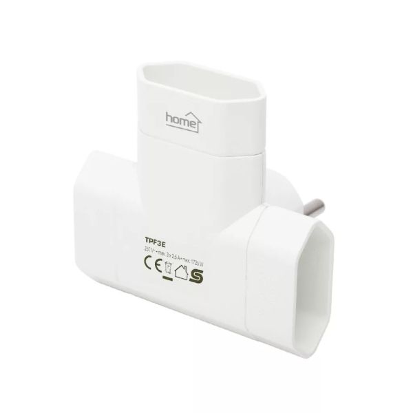 A HOME TPF3E T elosztó három darab EURO szabványú csatlakozóaljzattal rendelkezik, így ideális választás lehet otthoni vagy irodai környezetekbe, ahol megbízható és helytakarékos áramelosztásra van szükség.