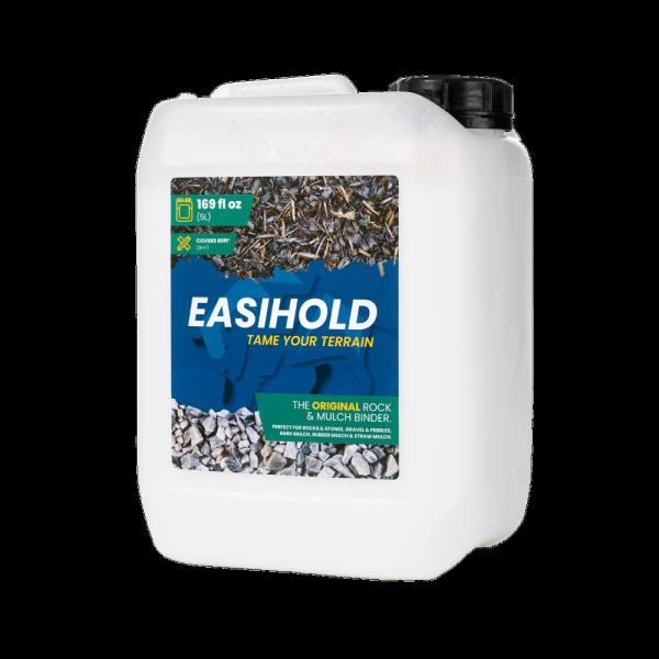 Az Easihold egy környezetbarát, vízbázisú kötőanyag, amely segít a laza kavics, zúzalék és mulcs rögzítésében. Könnyen alkalmazható öntéssel, permetezéssel vagy keveréssel, és tartós, vízáteresztő felületet biztosít. Ideális kerti utakhoz, dekorációhoz és lejtős területekhez. Gyorsan szárad, nem mérgező, és akár 3 évig is hatékony marad.
