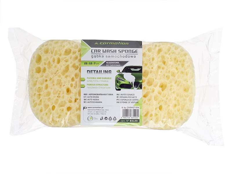 Az univerzális szivacs alkalmas karosszéria, üvegek, tükrök, festett és festetlen alkatrészek, valamint autók, motorkerékpárok és pótkocsik kerekeinek mosására. Téglalap alakú, könnyen fogható. Szivacs típusa: puha.