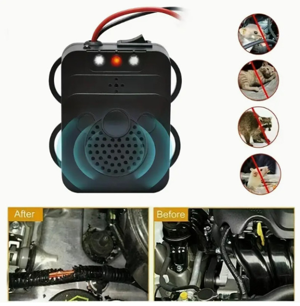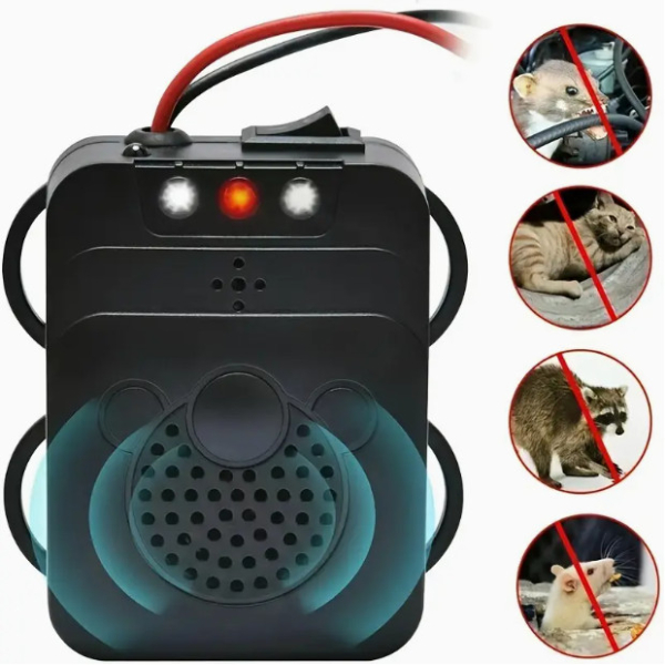 Ez a készülék egy modern nyestriasztó, amely autók motorterében vagy más kritikus pontokon használható a rágcsálók (például nyestek) elriasztására. A készülék ultrahangot és erős LED villanásokat használ, hogy megzavarja és távol tartsa az állatokat a járműtől.